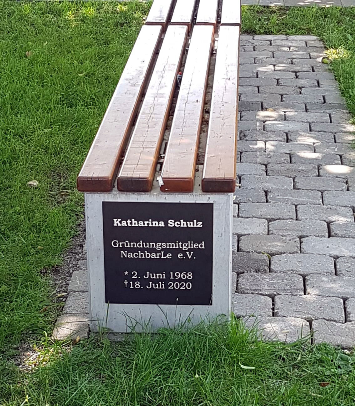 Im Gedenken an unser Gründungsmitglied Katharina Schulz haben wir an der Sitzbank der Fünf-Esslinger-Anlage in der Stöcklenstraße eine Erinnerungstafel angebracht.